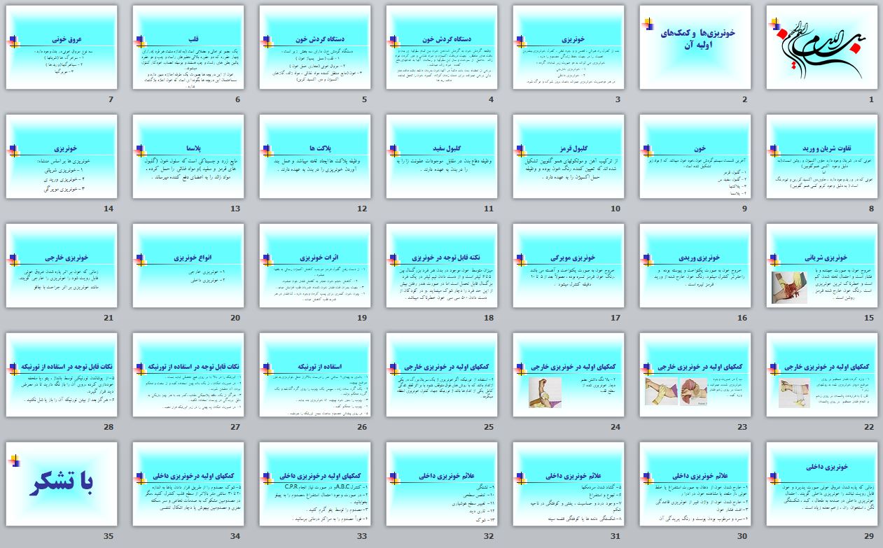 در این بخش پاورپوینت خونريزيها و کمکهای اولیه آن در 35 اسلاید برای دانلود قرار داده شده است. در ذیل پیشنمایشی از آن آورده شده است.
