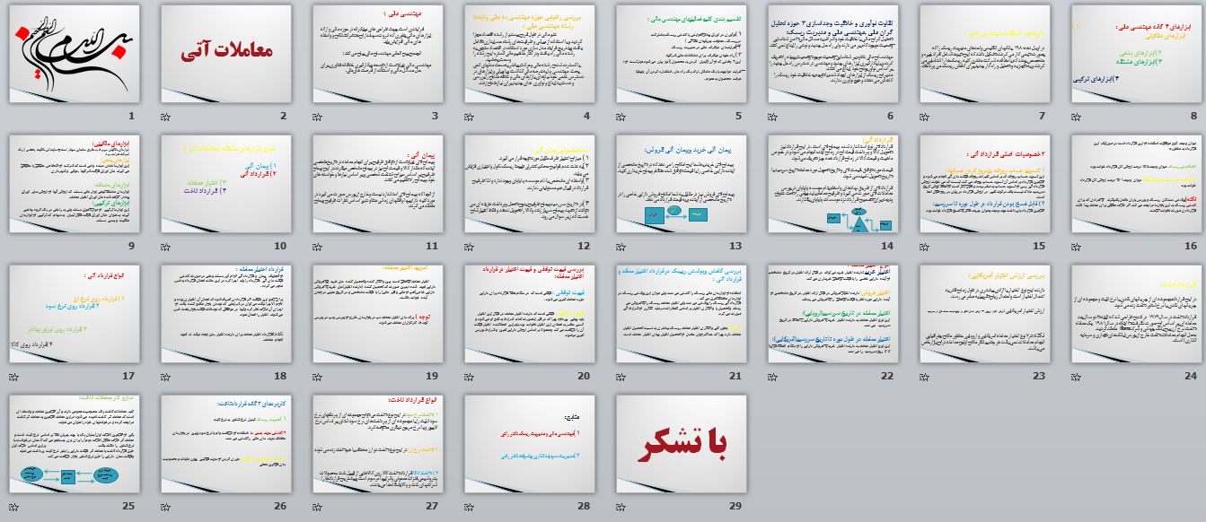 در این بخش پاورپوینتی با موضوع و عنوان معاملات آتی در 29 اسلاید برای دانلود قرار داده شده است. در ذیل پیشنمایشی از آن آورده شده است.