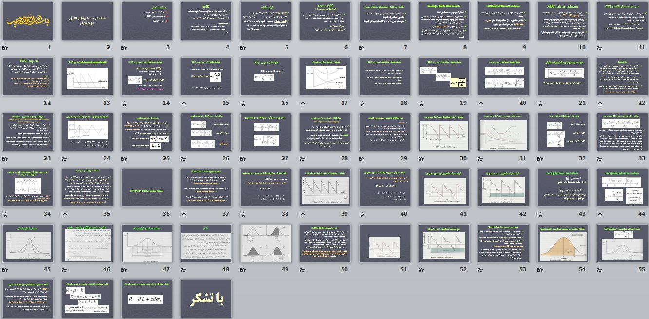 در این بخش پاورپوینت تقاضا و سيستمهای كنترل موجودی در 59 اسلاید برای دانلود قرار داده شده است. در ذیل پیشنمایشی از آن آورده شده است.